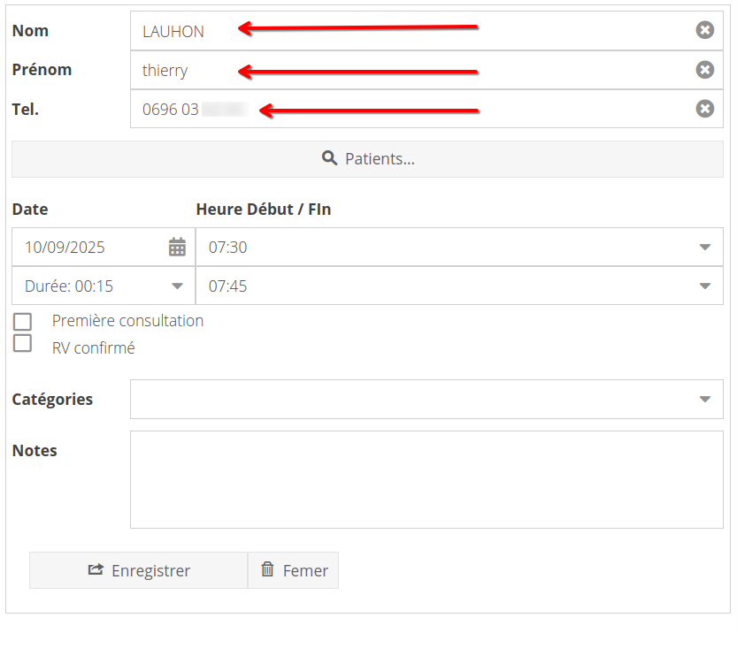 Chaque fois que vous cliquez sur le bouton “enregistrer” de la fenêtre de prise de rendez-vous, cela créait un nouveau patient. Mais attention, car cela peut très vite tourner à la catastrophe en créant une infinité de doublons. Pour éviter cela, il faut vérifier que le nom du patient n’est pas déjà présent dans la base de données.